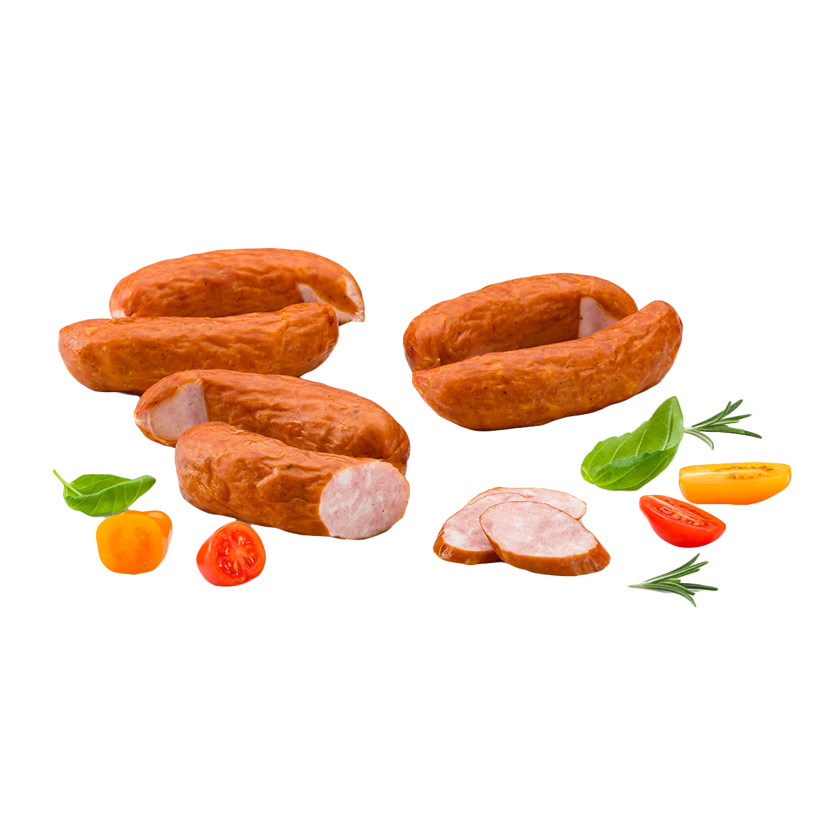 100 g produktu wyprodukowano ze 100 g mięsa wieprzowego z szynki, mięsowieprzowe z szynki, sól, przyprawy (zawierają GORCZYCĘ), naturalny aromat, acerola w proszku, osłonka jadalna: jelito wieprzowe. Produkt może zawierać: SOJĘ, MLEKO, JAJA i SELER..Wartość odżywcza w 100 g produktu: Wartość energetyczna 1032kJ/248 kcal, Tłuszcz 19 g, w tym kwasy tłuszczowe nasycone 6,9 g, Węglowodany 1,0 g, w tym cukry 0,7 g, Białko 18 g, Sól 2,2 g
